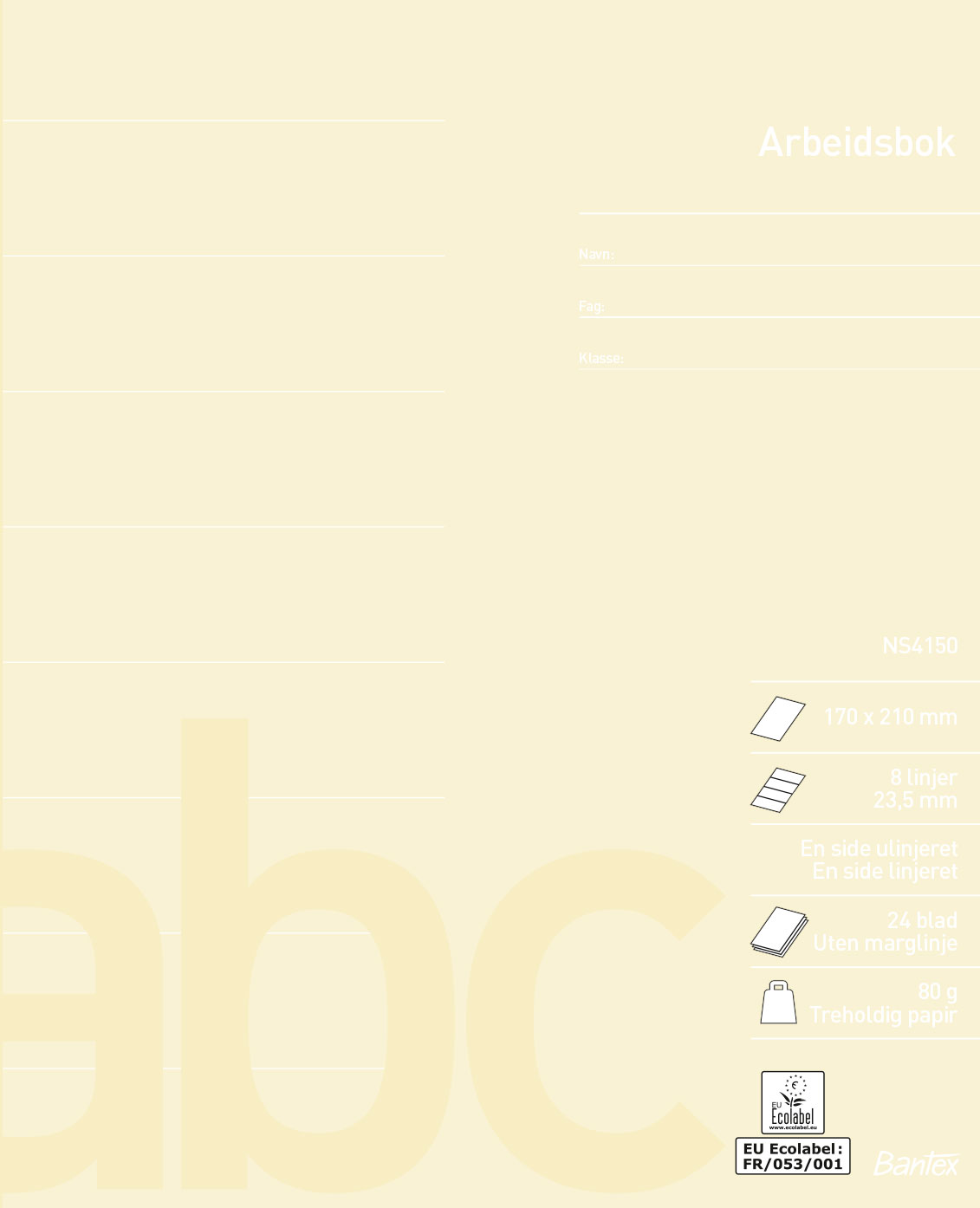 Bantex skolehæfter er produceret efter Norsk Standard NS4150. De er fremstillet 80g træholdigt papir, indeholder 24 blade.
