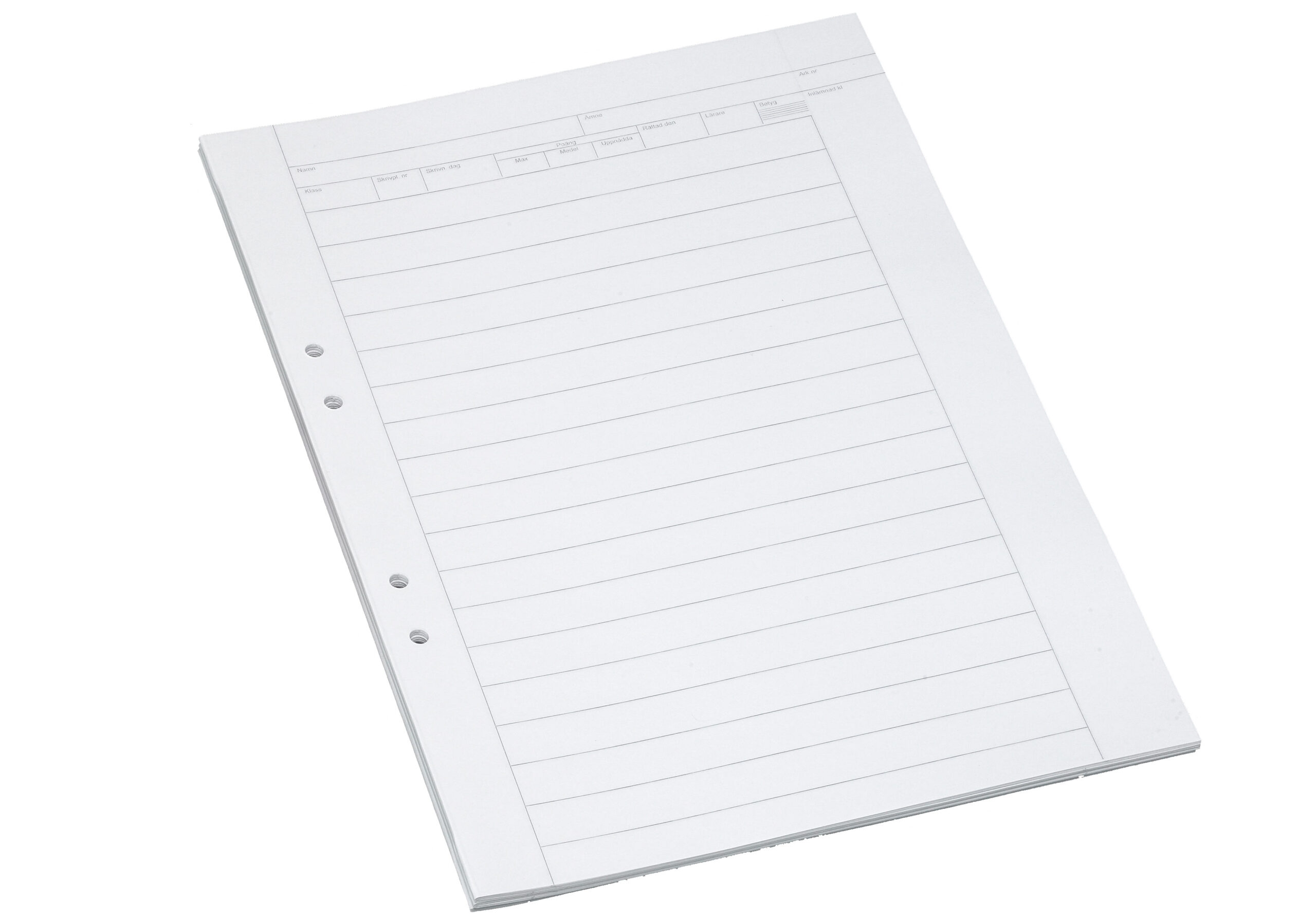 Bantex eksamenspapir er udviklet til skoler og andre uddannelsesinstitutioner. Høj kvalitet papir med hoved til notering af alle de informationer lovgivningen kræver. Svensk tekst.