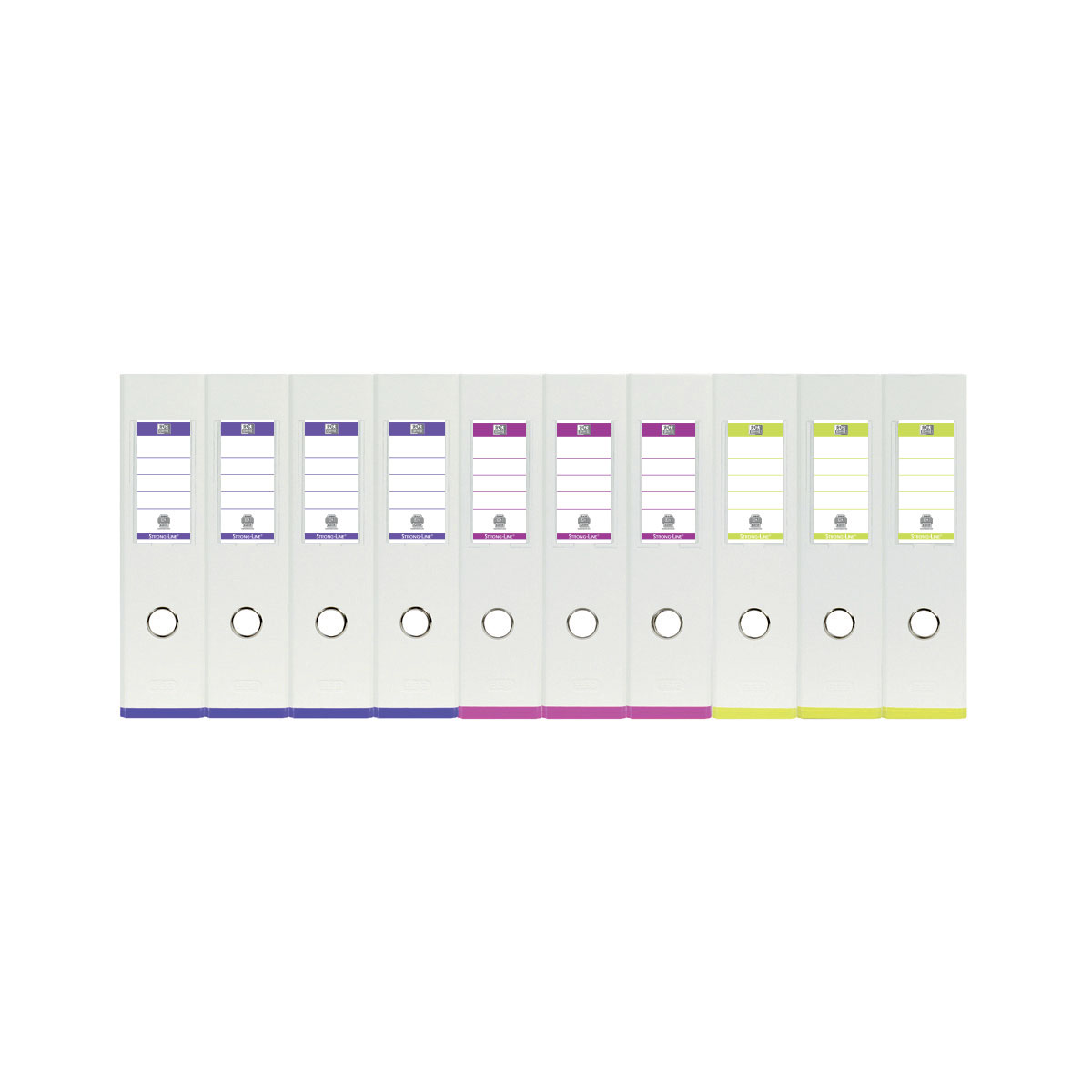 MyColour Strong-Line brevordnere i smarte friske farvekombinationer. • Dobbelt PP folie bund, beskytter brevordner og inventar • Rado system, stabiliserer mekanismen og gør at brevordneren står solidt • Stærk mekanisme som lukker præcist også ved stor belastning, testet med 2 kg papir • Matchende rygettiketter med tryk på begge sider • Produceret med omtanke for miljøet, af PP folie og genbrugs pap. • Lang holdbarhed, kan genbruges mange gange. • www.myoxfordprint.com til nem og personlig udskrivning af rygettiketter • 5 års garanti på dobbelt PP-folie bund og mekanisme! * Ny forbedret mekanisme – for komfort og minimal berøring med metallet.