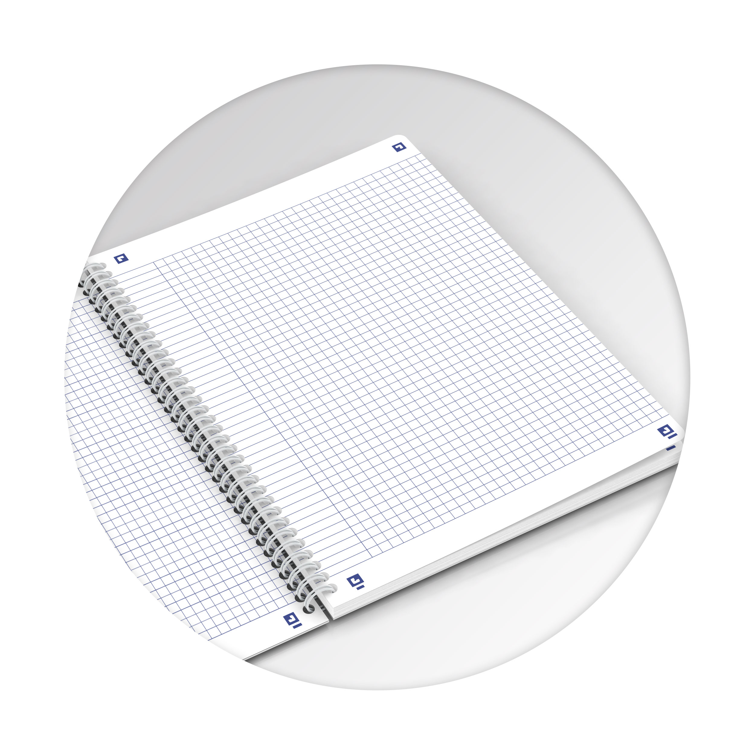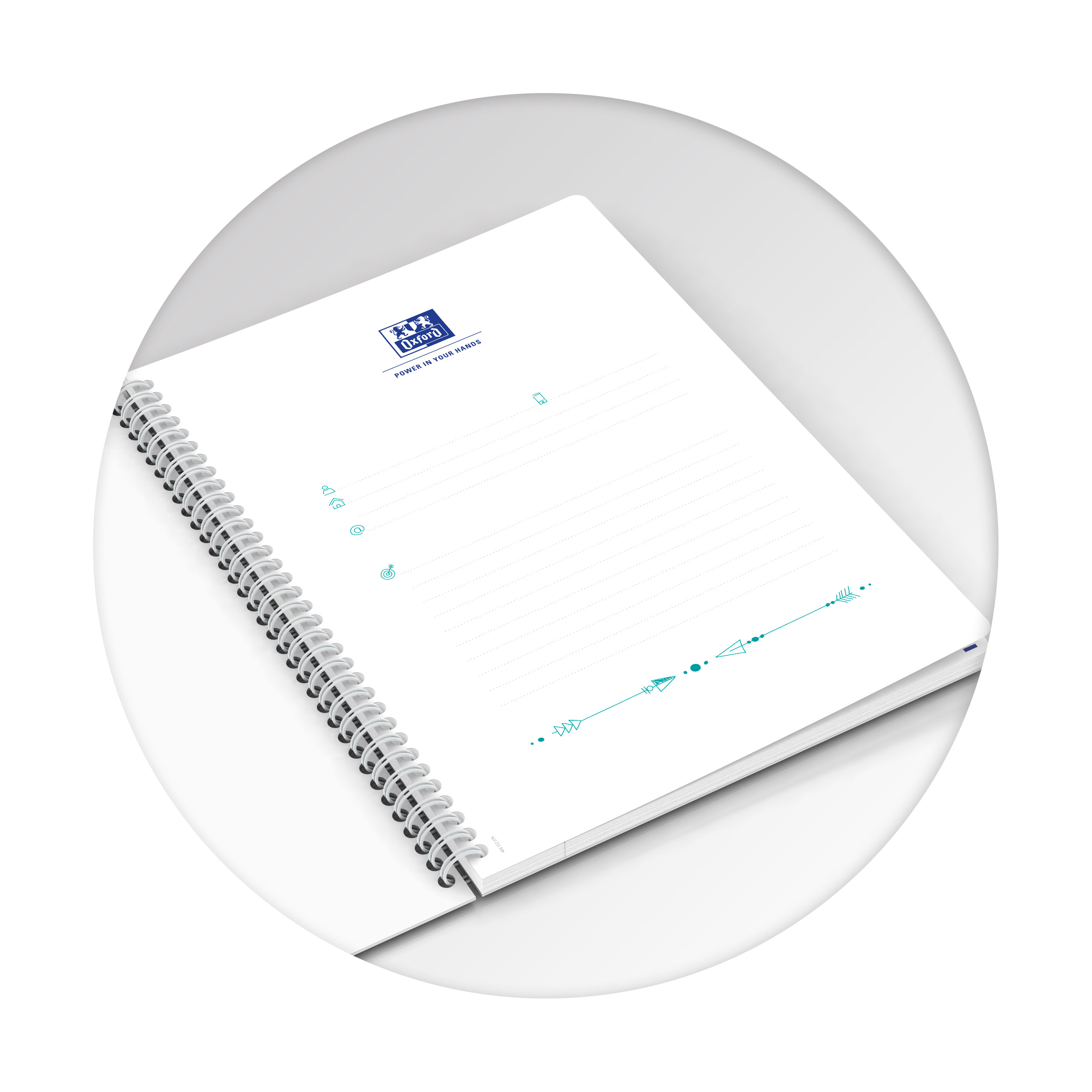 Oxford Iconic B5-notesbog har soft cover og dobbeltspiral. Den er kvadreret 5×5 mm, har 120 sider, findes i assorterede design, og er Scribzee-aktiveret