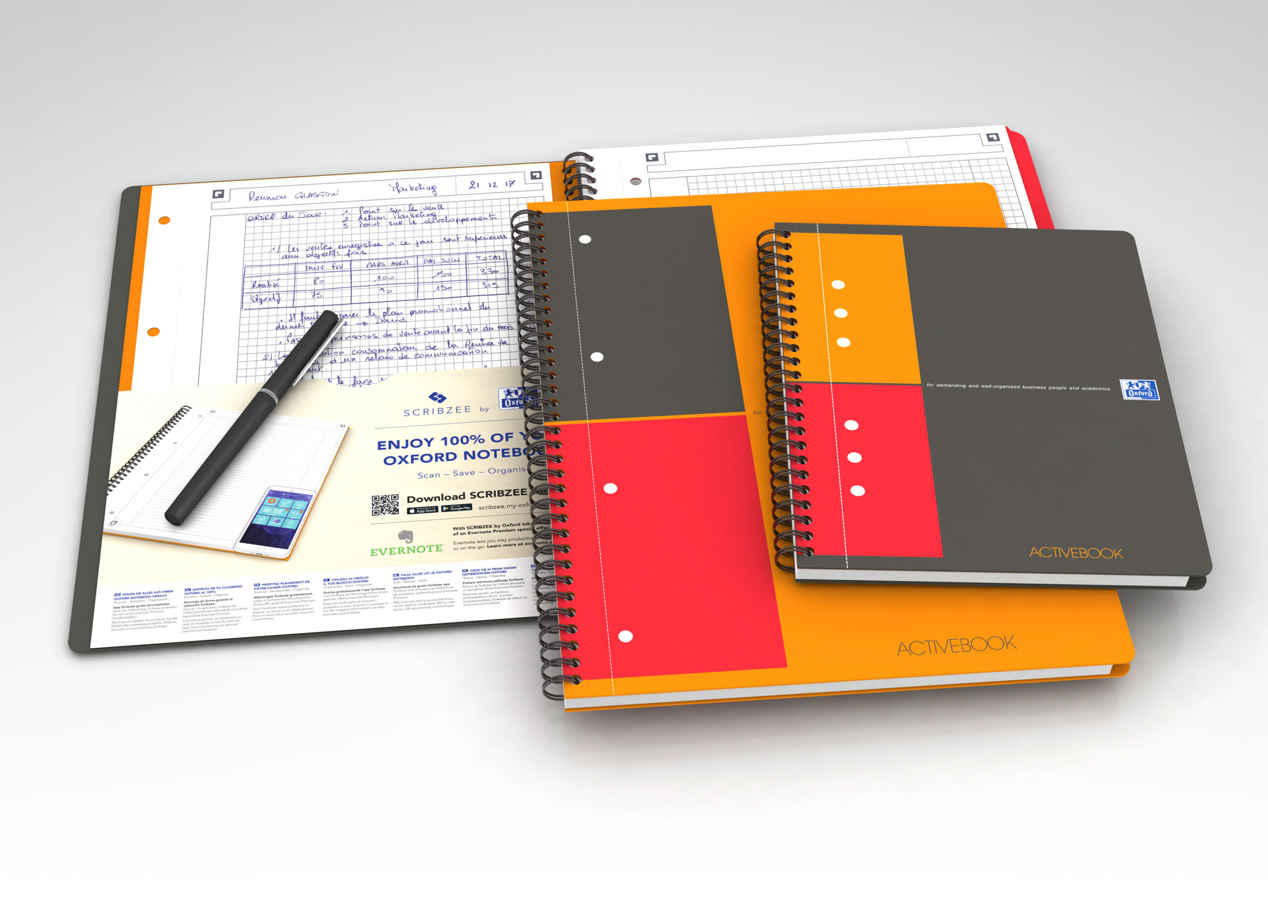 Skriv noterne i din notesbog, download app´en (SCRIBZEE), scan noterne med din smartphone, gem noterne direkte på smartphone eller computer og del via e-mail, på OneDrive eller Dropbox.