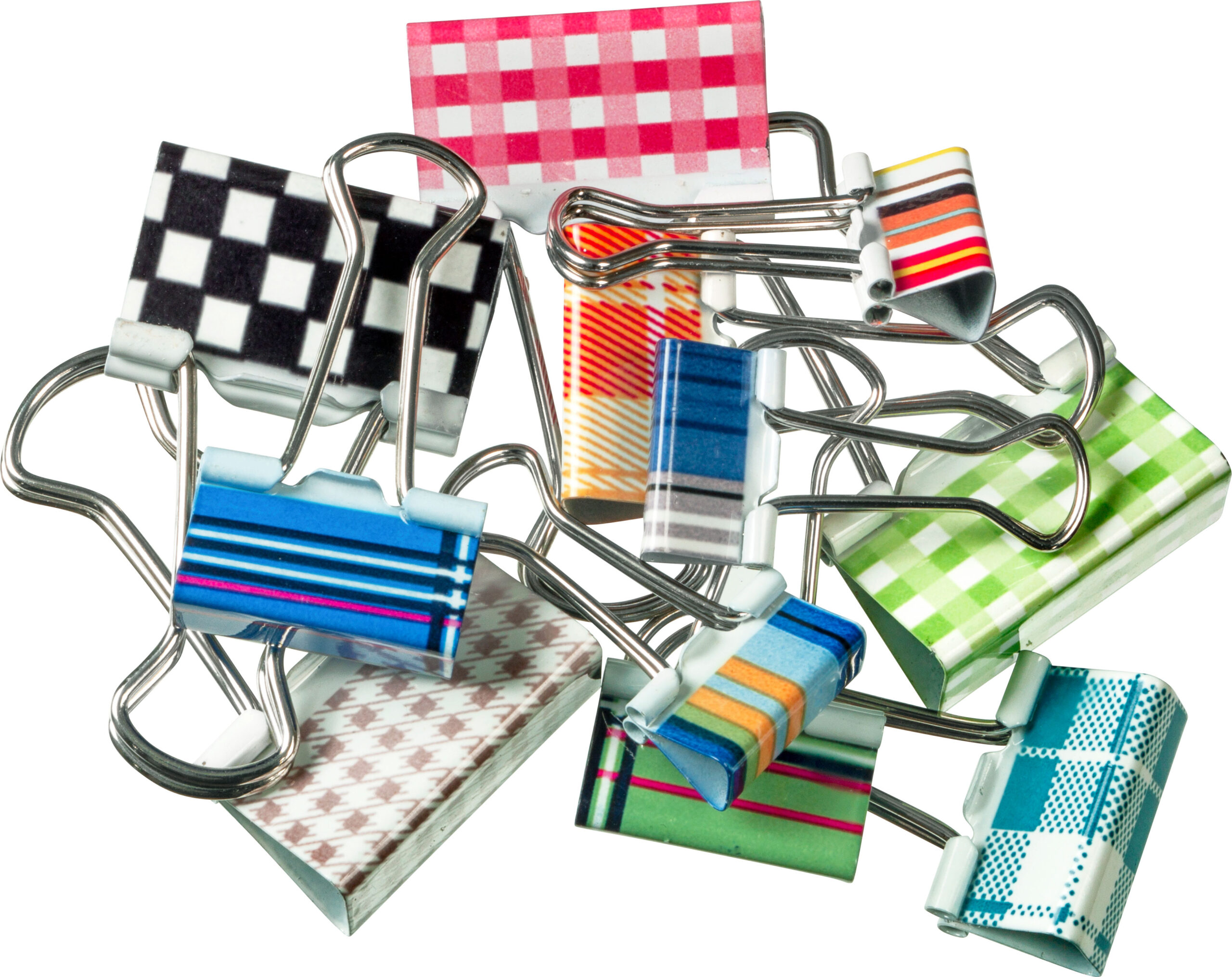 Flotte clips til at holde ark, poser, fotos og stabler af papir sammen. Attraktive og moderne mønstre i forskellige farver.