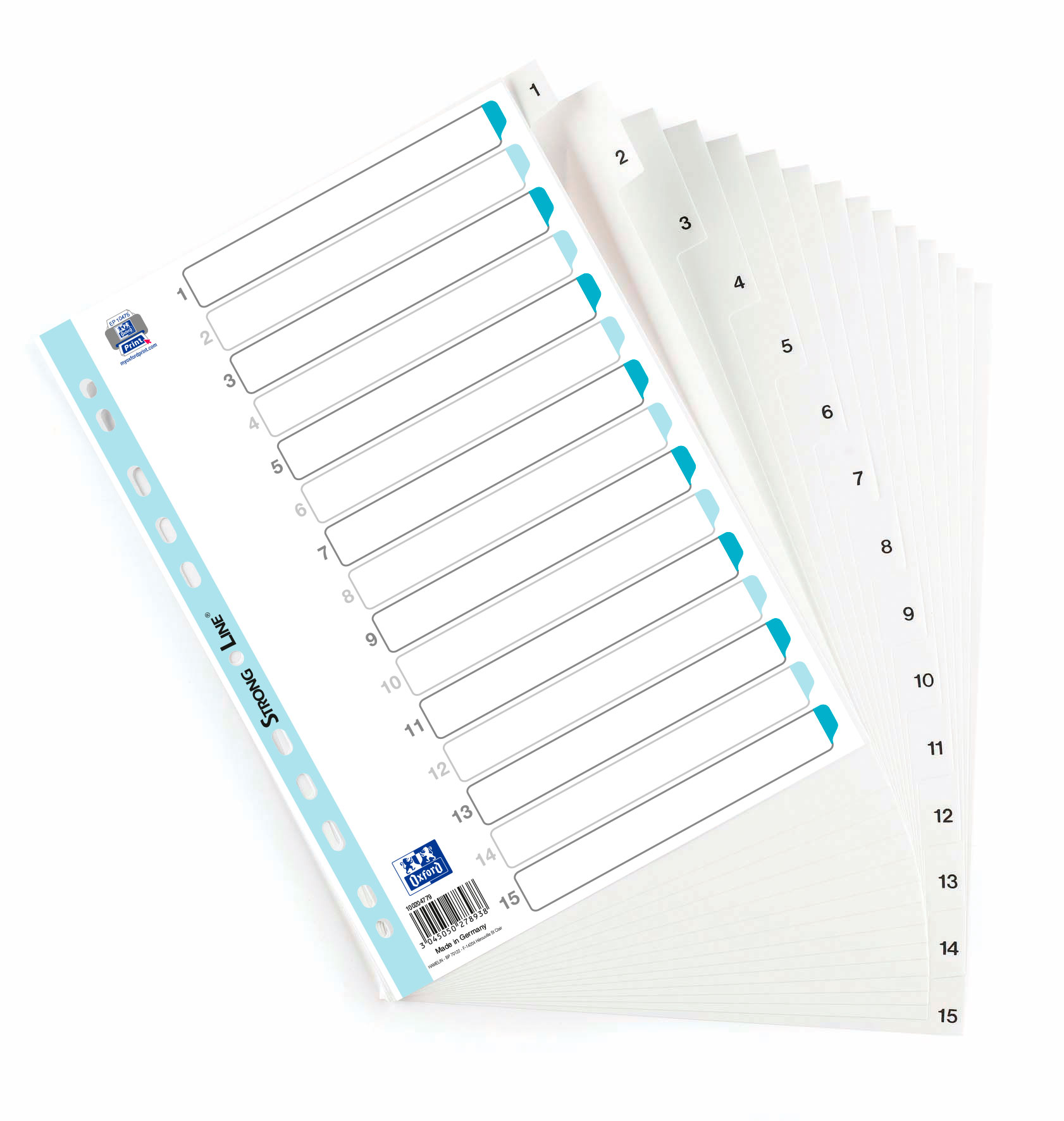 Register fremstillet i slidstærk PP-folie 120 my. Forsynet med trykt kartonforblad med Strong-Line® hulforstærkning. Personliggør forbladet på www.oxfordprint.com