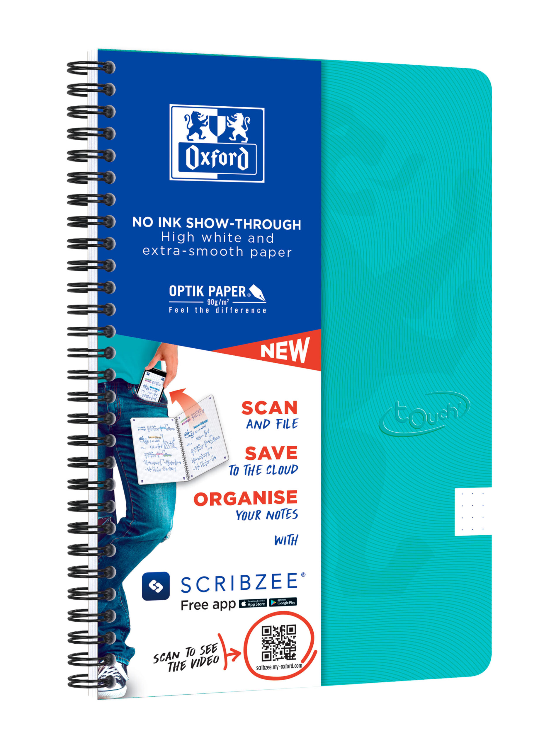 Notesbog i høj kvalitet med tykt 90 g Optik Paper® som er behageligt at læse og skrive på, selv i stærkt sollys, hvor papiret ikke giver genskin. Kvaliteten af papiret gør at 70 ark bliver til 140 sider, da du kan skrive på begge sider af papiret, uden at det trænger igennem. Det kraftige karton omslag er vand og smudsafvisende, og har en blød “Soft Touch” overflade som giver et ekslusivt look og er behageligt at røre ved. Den dobbelte spiral gør notesbogen stærk, så den holder helt til sidste side og notesbogen ligger helt fladt når den er åbnet eller kan slåes om, hvilket er en fodel når man skriver. De afrundede hjørner giver ikke kun et bedre udseende, det hjælper også imod at siderne nemt bliver bukkede, når den tages op og ned fra tasken ofte. De smarte SCRIBZEE tags bruges sammen med den gratis App. Med den kan du scanne, gemme, organisere og dele dine noter, når du vil, hvor du vil, fra PC, smartphone eller tablet.