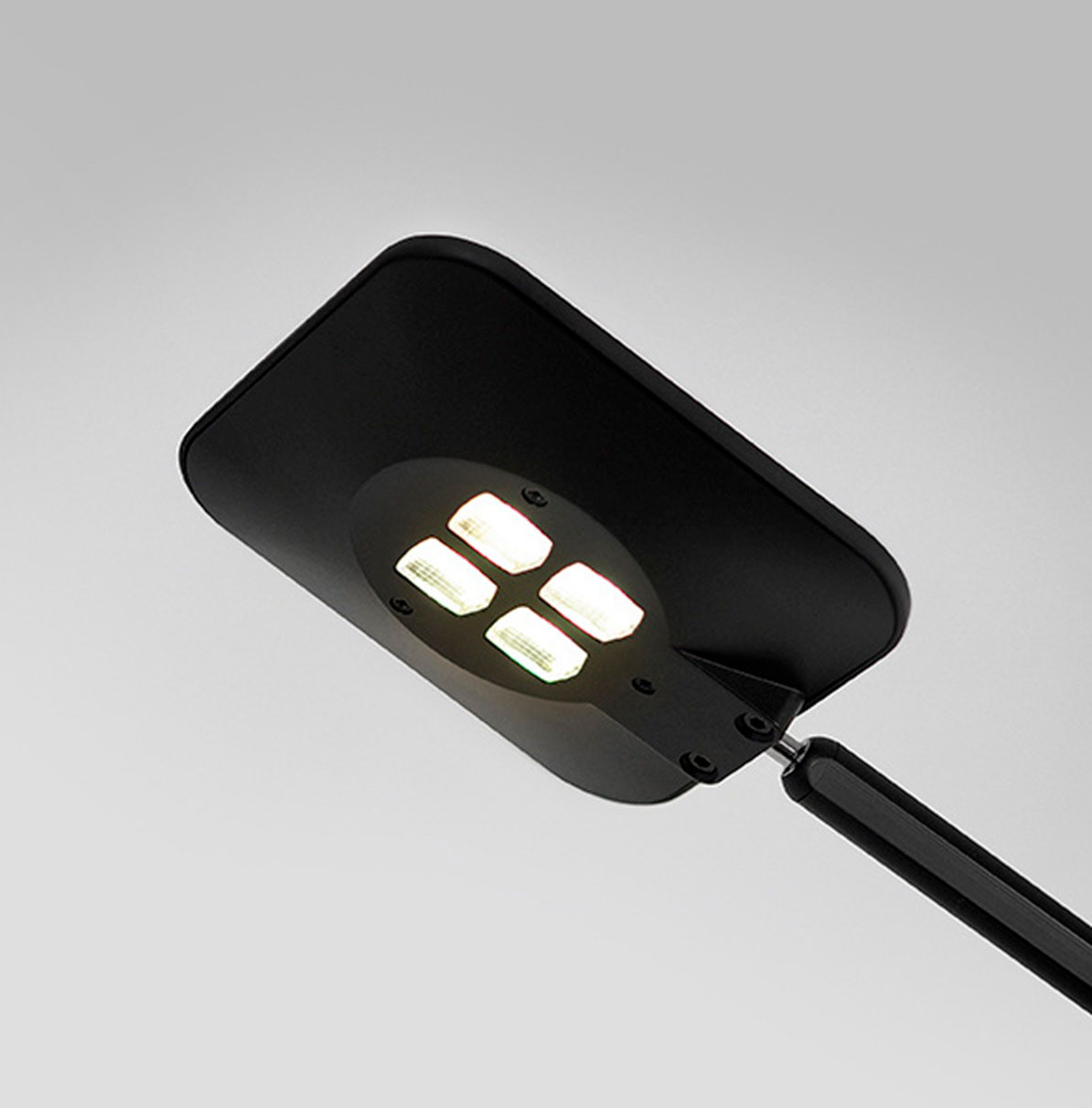 Asymmetrisk belysning, gør den perfekt til arbejdet ved computeren. Udstyret med 4 LED’er på 1,4 W: levetid gennemsnit er ca 40,000 timer med konstant lysudbytte. Arm med fjeder, så der er mulighed for at indstille lampen som man ønsker.