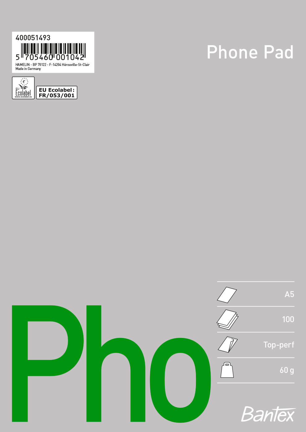 Alle Bantex-telefonblokker er stiftet i toppen og utstyrt med tekstiltape. De er mikroperforerte, noe som gir en nesten renskåret kant. Telefonblokkene er svanemerket og EU-ecolabel.