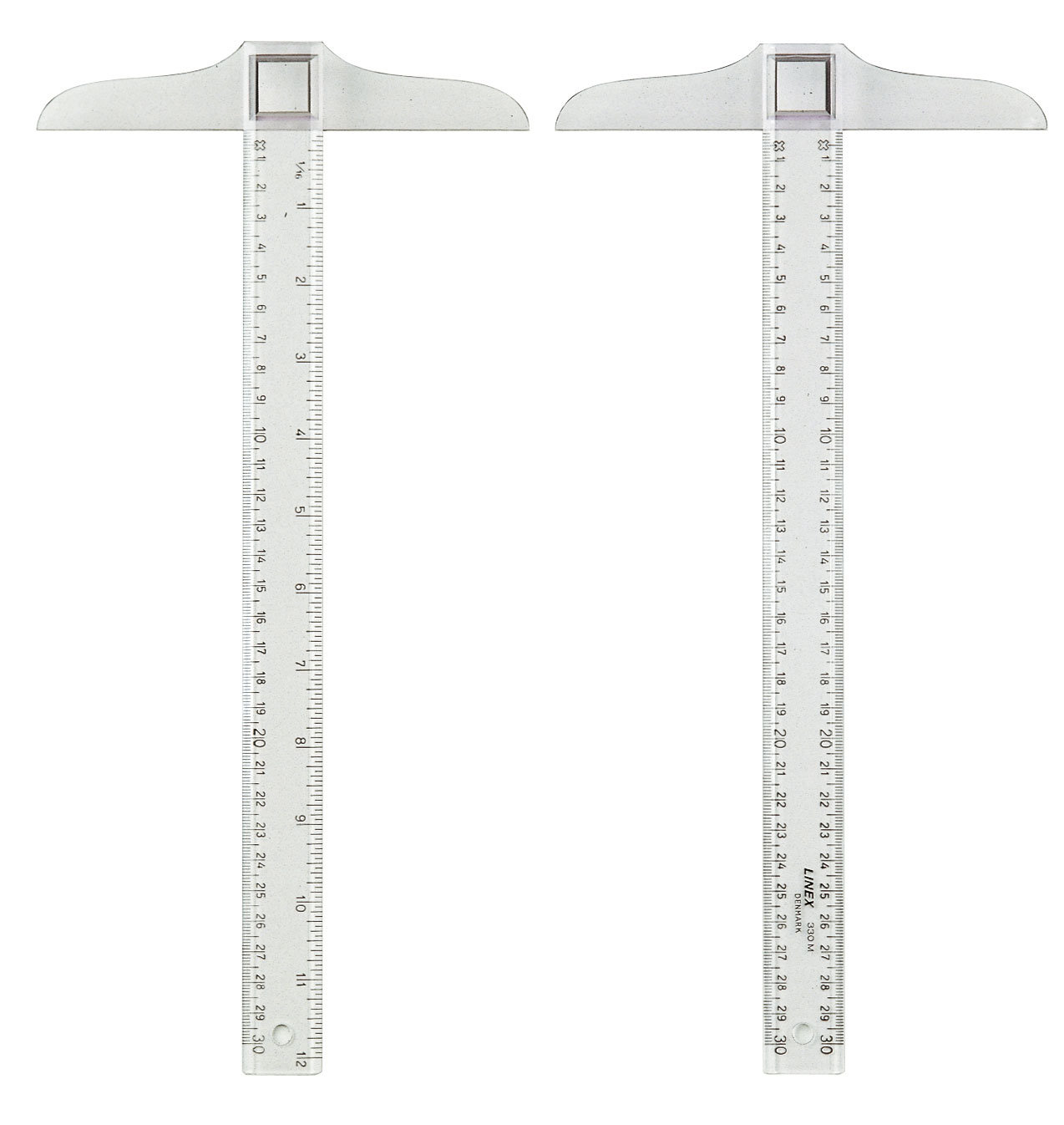 Med to fasetter. Inndelt i mm på begge fasetter.