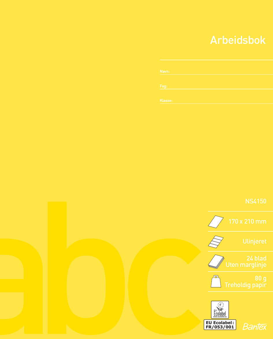 Alla Bantex skolhäften Norsk standard NS4150 håller hög produktkvalitet. Det finns ett stort antal linjeringsalternativ att välja mellan, vilket innebär att elever i alla åldrar med fördel kan använda skolhäftena. Varje linjeringstyp har en egen färg, vilket gör det lätt för eleverna att känna igen den linjeringstyp de brukar använda. På baksidan av häftet finns praktisk information samt linjal. EU-ecolabel.