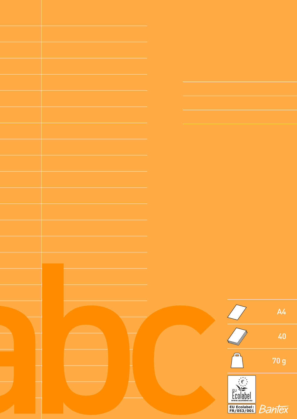 Alla Bantex skolhäften håller hög produktkvalitet. Det finns ett stort antal linjeringsalternativ att välja mellan, vilket innebär att elever i alla åldrar med fördel kan använda skolhäftena. Varje linjeringstyp har en egen färg, vilket gör det lätt för eleverna att känna igen den linjeringstyp de brukar använda. På baksidan av häftet finns praktisk information samt linjal. EU-ecolabel.
