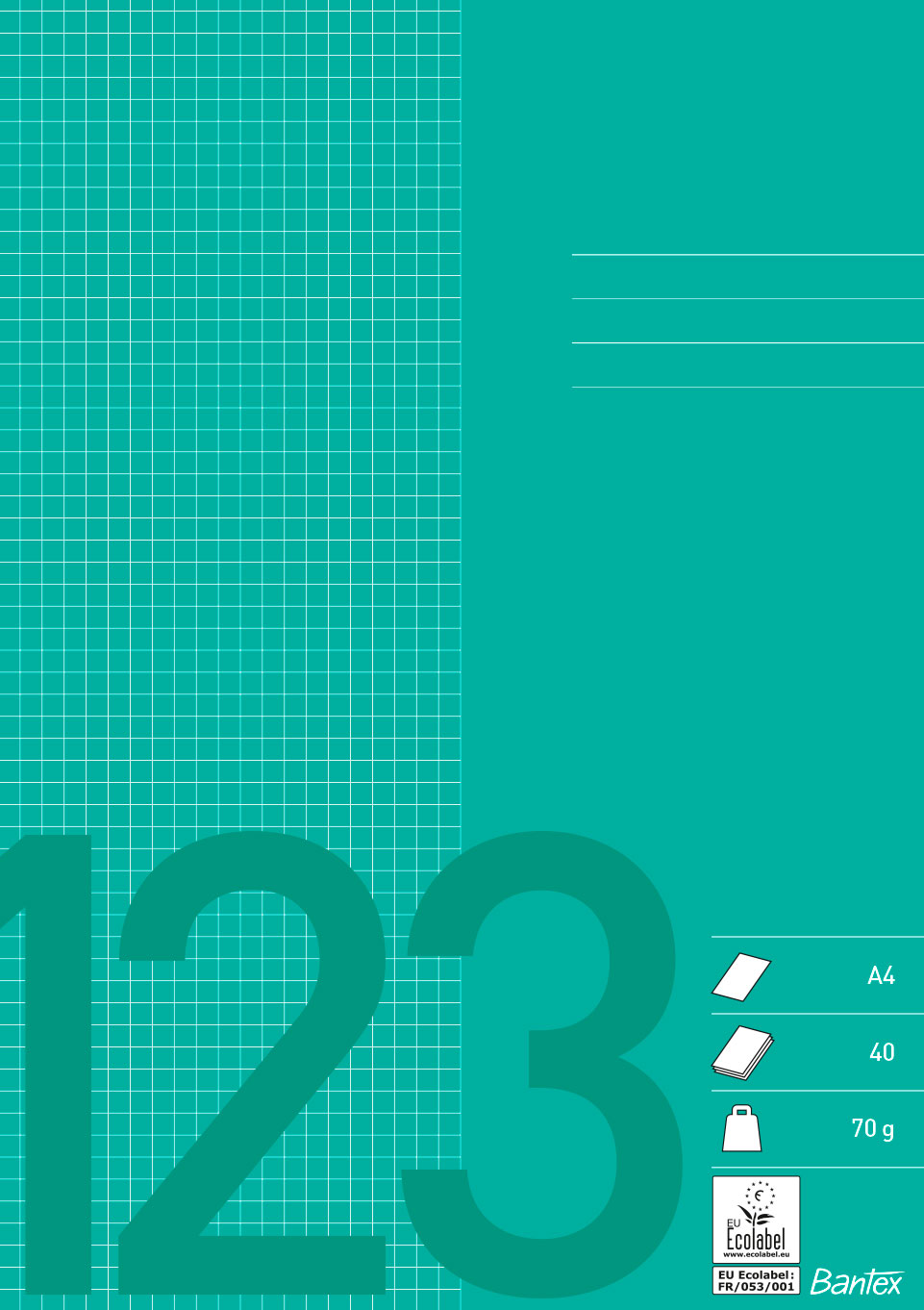 Alla Bantex skolhäften håller hög produktkvalitet. Det finns ett stort antal linjeringsalternativ att välja mellan, vilket innebär att elever i alla åldrar med fördel kan använda skolhäftena. Varje linjeringstyp har en egen färg, vilket gör det lätt för eleverna att känna igen den linjeringstyp de brukar använda. På baksidan av häftet finns praktisk information samt linjal. EU-ecolabel.