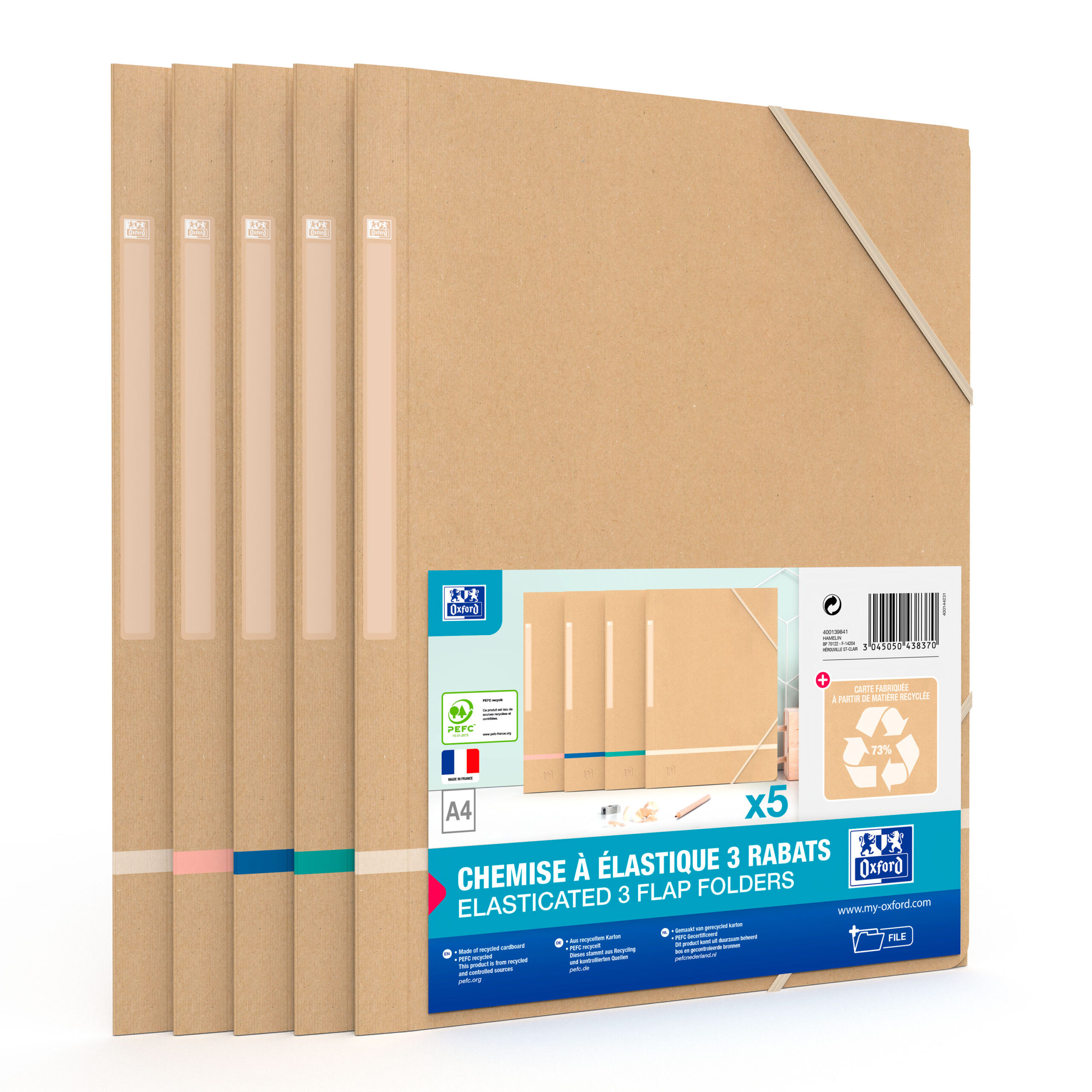 Touareg-serien är tillverkad av återvunnet material och erbjuder ett hållbart alternativ för engagerade konsumenter. Touareg kombinerar modern trend och elegans utan att minska produkternas tålighet. Kraft-färgen i naturliga nyanser underlättar både professionell och personlig organisering och det vegetabiliska bläcket samt PEFC-certifieringen garanterar hållbar skogsförvaltning genom att begränsa miljöpåverkan. Mappen med 3 flikar är tillverkad av 450 g kartong och är tålig och hållbar. Utrustad med en självhäftande etikett på ryggen så att du lätt hittar rätt mapp och den stängs med gummiband så att dina dokument förvaras säkert. 4 naturliga färger som hjälper dig optimera din personliga och professionella arkivering.