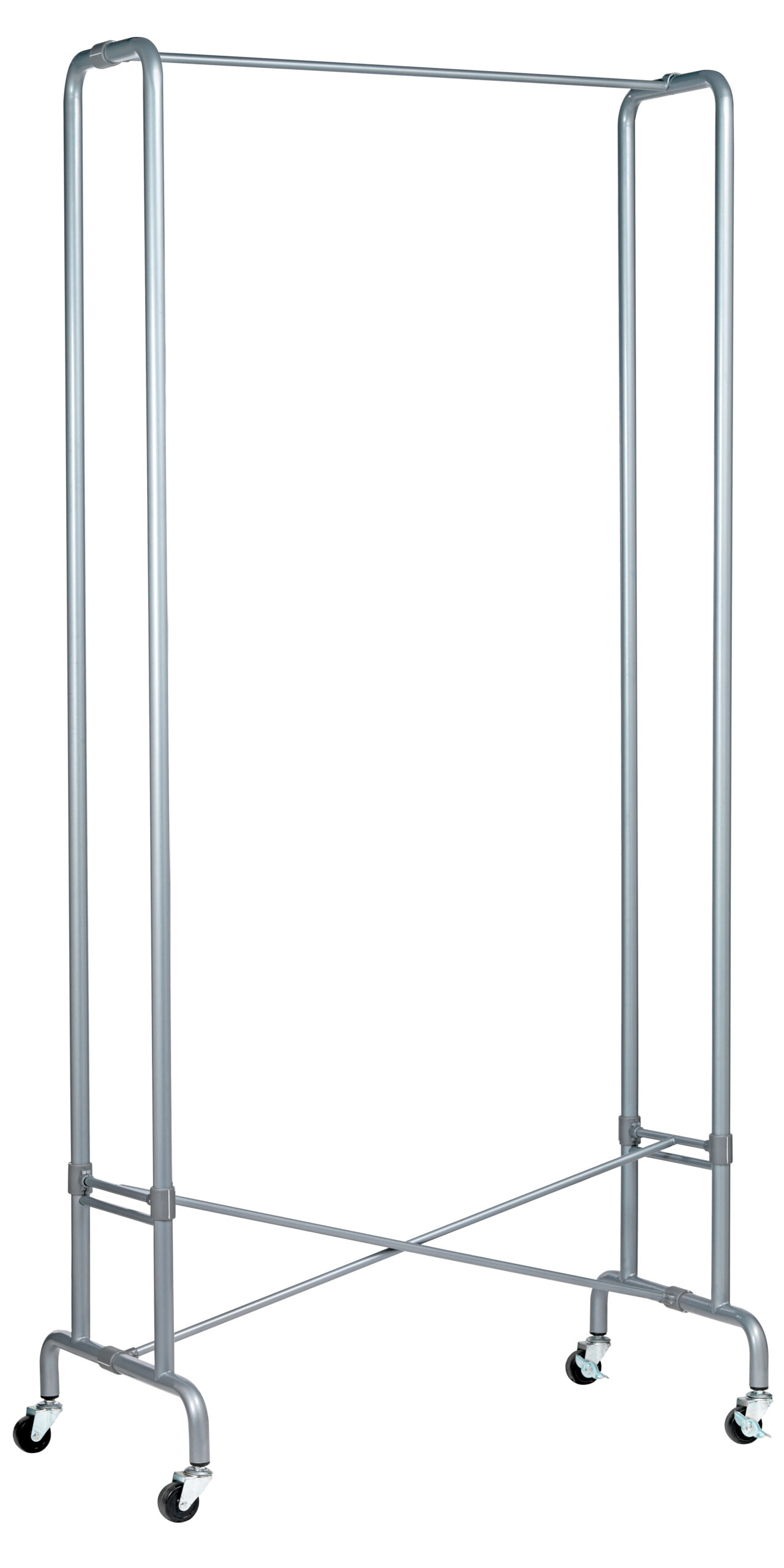 Den starka ställningen består av stålrör med en diameter på 2,5 cm (1,25 cm för den övre tvärslån) och rymmer upp till 40 klassiska galgar eller galgar med stöldskydd. FOLDY är utrustad med svängbara hjul som gör det enkelt att flytta den för hand.