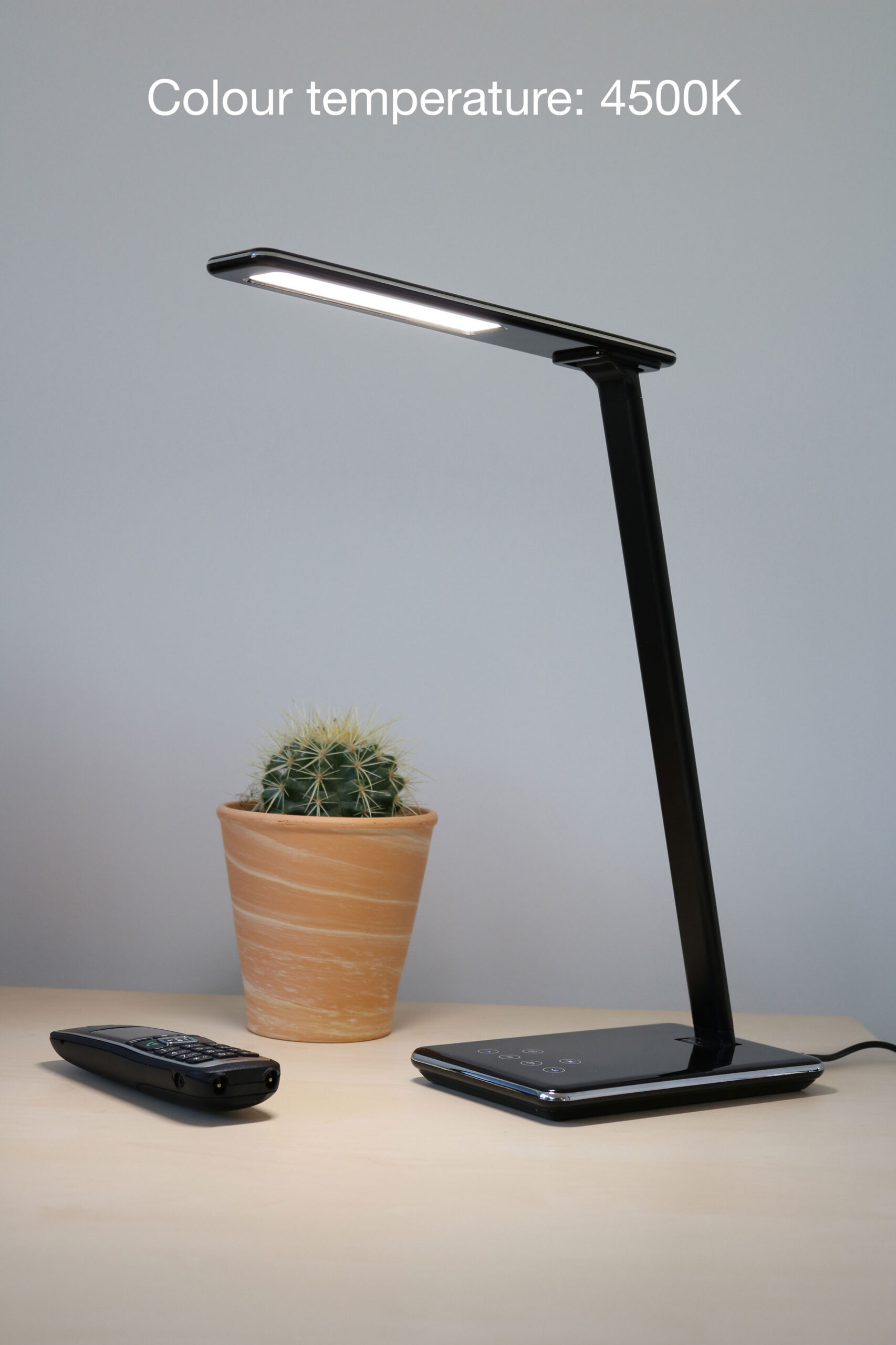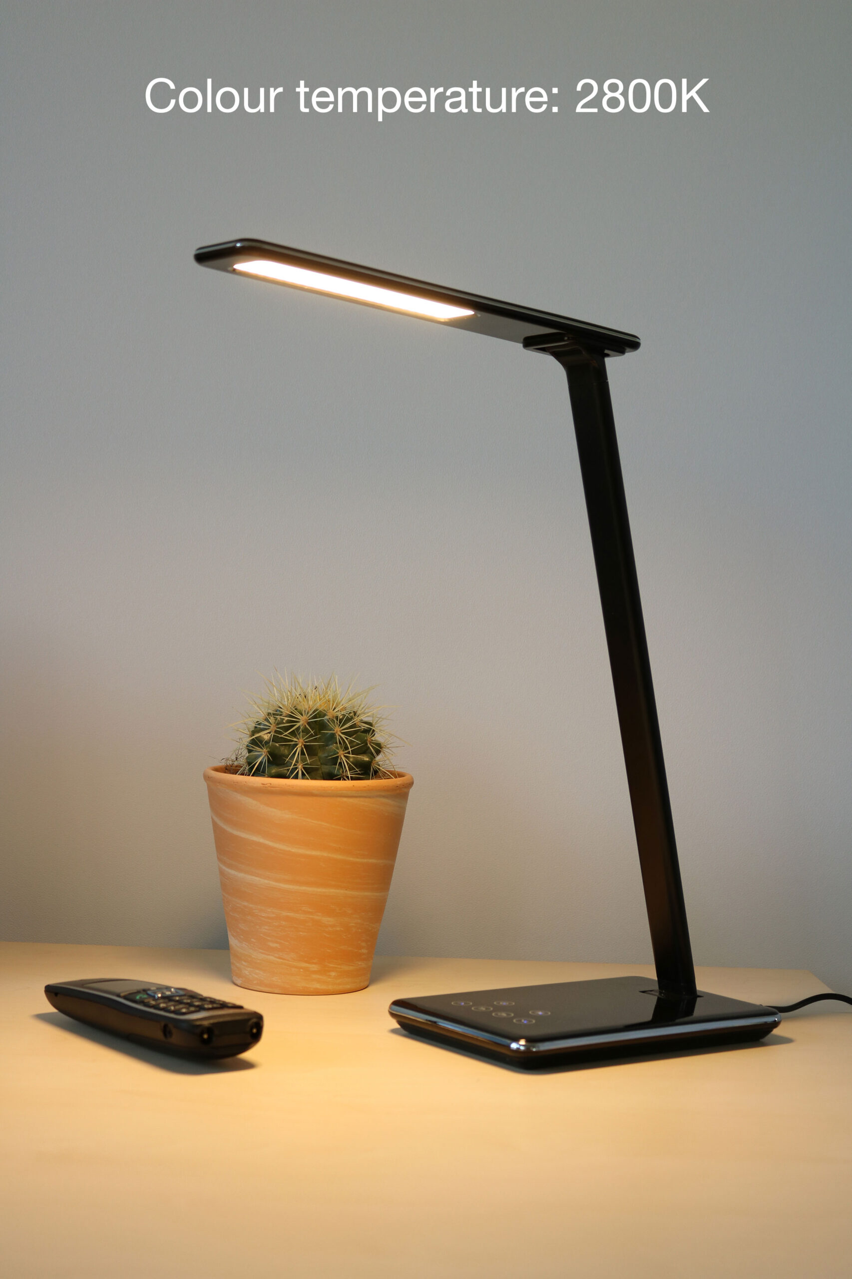 LINKA är en LED-skrivbordslampa med högeffektiv 5W LED-belysning. En touchströmbrytare på foten varierar ljusintensiteten och en annan gör det möjligt att justera belysningsfärgen i fyra olika nivåer beroende på vilka olika aktiviteter och dagliga uppgifter du ägnar dig åt: arbete, läsning, vila. LINKA utmärks av sin design med fina och rena linjer. Huvudet överstiger inte 1 cm i tjocklek, vilket ger lampan en elegant karaktär. Den är utrustad med en USB-port och en trådlös telefonladdare (certifierad Qi, kompatibel med alla smarttelefoner*). *Om du inte kan ladda din smarttelefon trådlöst, kan du bara lägga till en Qi-laddare.