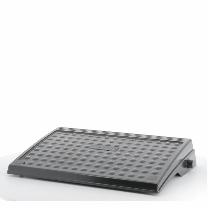 ORIGIN: Ergonomiskt fotstöd, utvecklat i samarbete med franska företagshälsovården ”Industrial Medicin” och tillverkat av 83 % återvunnet material. Lutningsinställningar (10°, 15°, 20°). Möjliggör en individuell inställning för varje steg. Den ojämna ytan ger fötterna behaglig massage som ökar blodcirkulationen. Levereras med ISO 9241-5 standard. Ytan tillverkad av återvunnen ABS-plast.