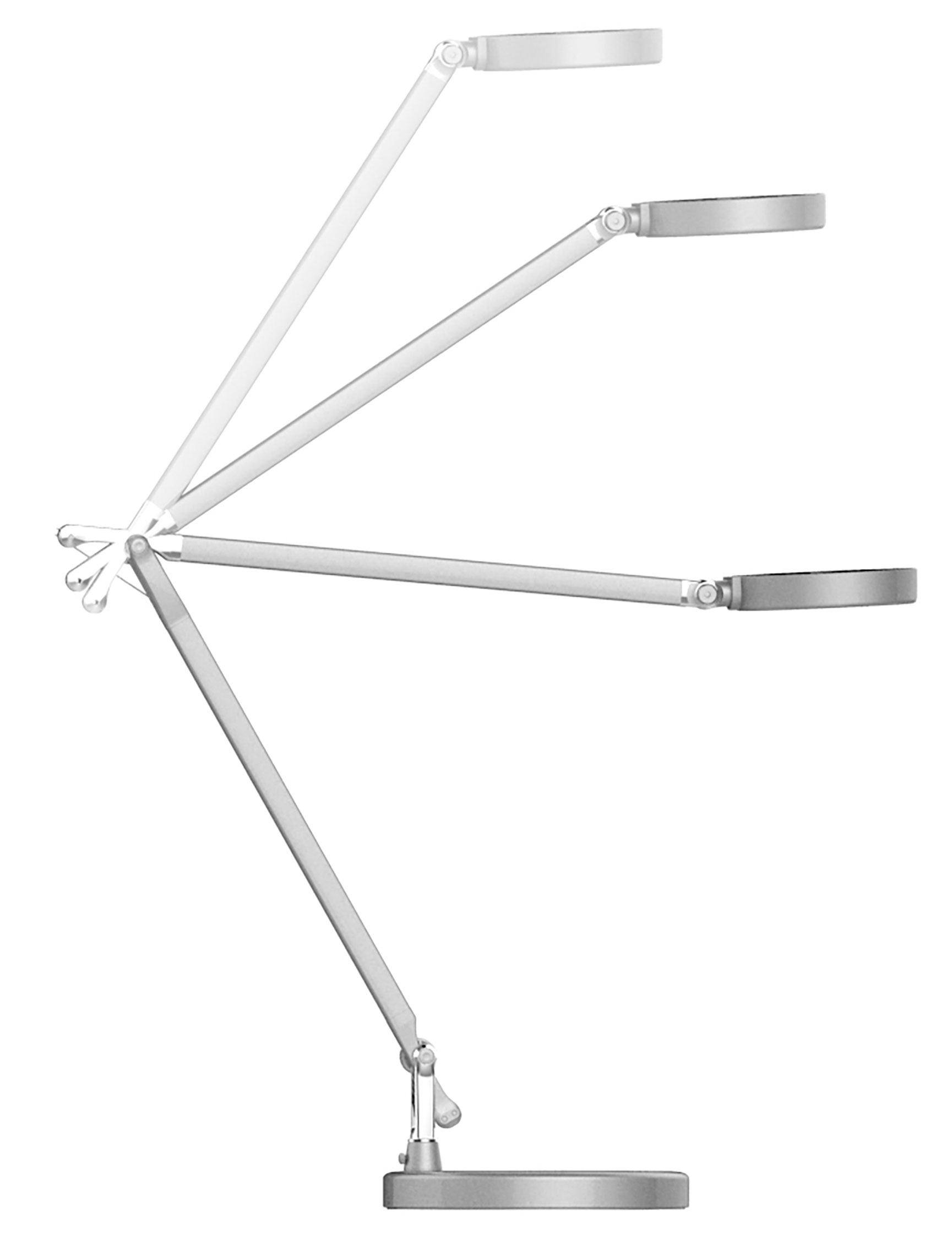 SENZA 2 kan enkelt justeras på många olika sätt med sin dubbelarm som är ledad på 3 ställen, och den är försedd med kompensationsfjädrar som ger smidiga rörelser. Lampan kan svängas 360° vid foten och lampan kan riktas åt alla håll.