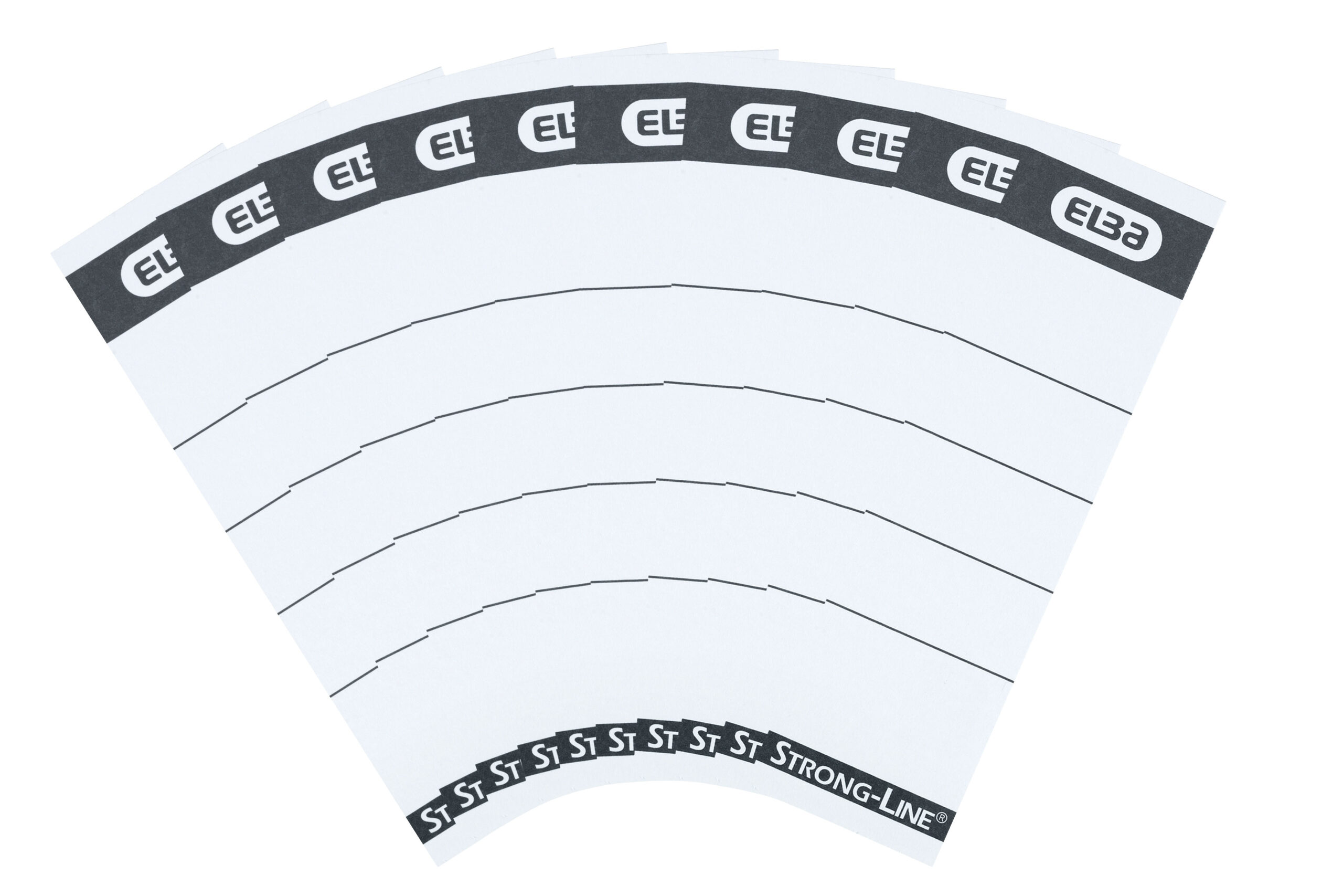 Thanks to the ELBA spine labels which can be custom-labelled, you are always perfectly organised. They provide a clear organisation on the shelf. With the web-based program “ELBAPrint” you can easily design your individual spine labels and print them afterwards.