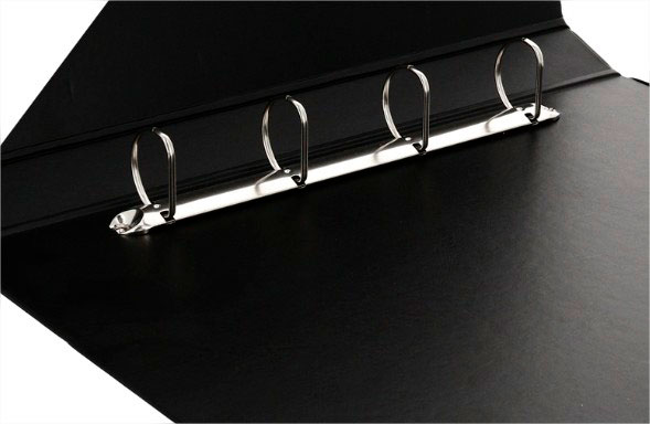 A3 Ring Binder with 40mm 4 D-rings, made of recycled cardboard covered with PVC. Spine width 55 mm for a capacity of 390 sheets. Black color. Reversable spine label