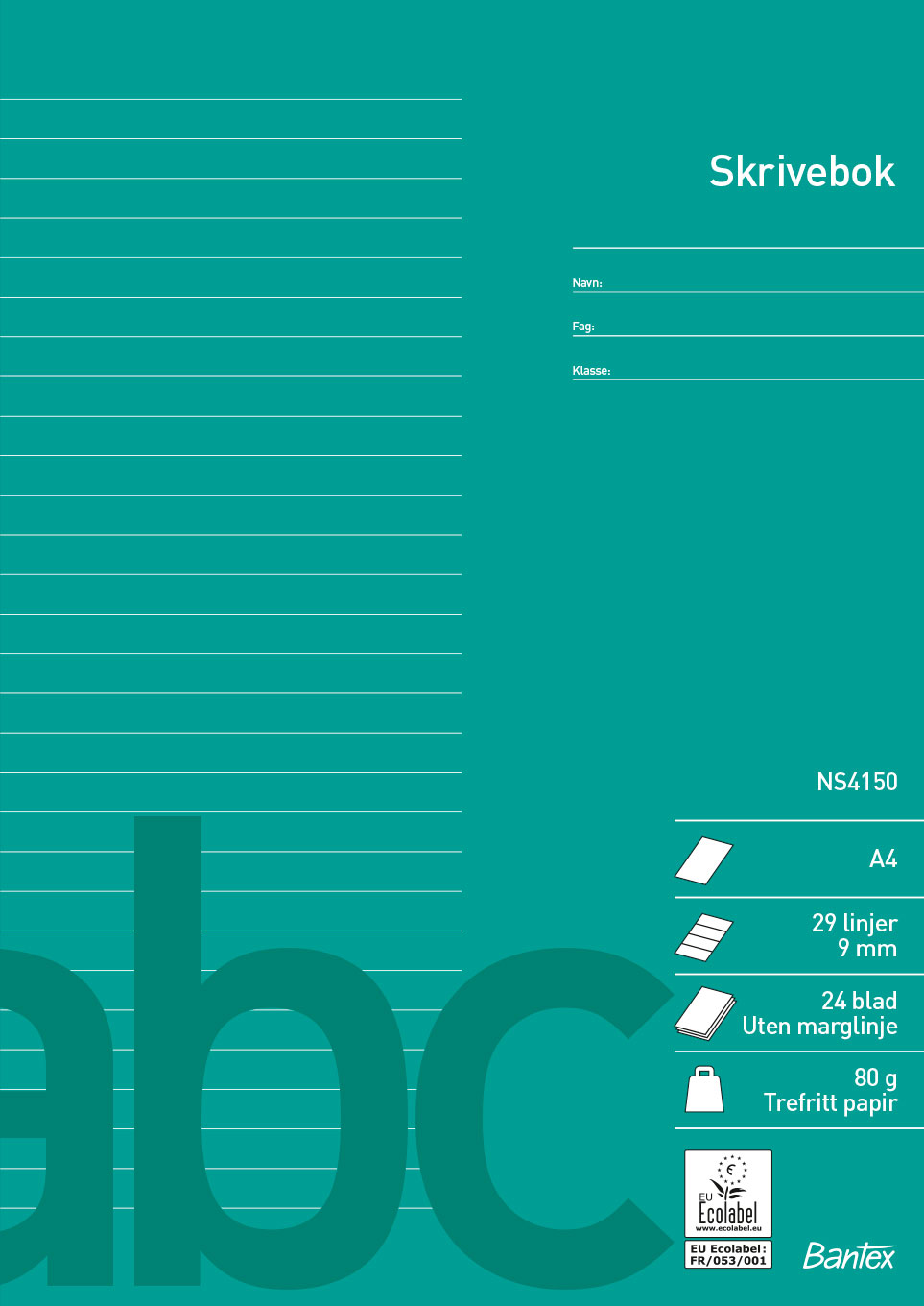 Bantex school exercise books Norwegian Standard NS 4150 are all high quality products. There are many ruling options to choose between, so that students of all ages can make use of the school exercise books. Each type of ruling has a different colour, making it easy to recognise which kind of ruling the students usually use. There are useful information and a ruler on the back cover of the exercise book. EU-ecolabel.