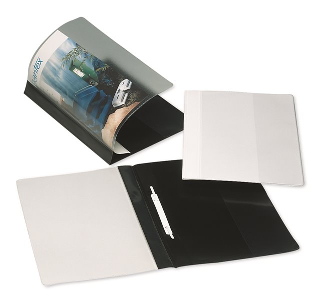 Hard-wearing deluxe folder. With double clear front cover for insertion. Transparent pocket on inner back cover. Extra width for pockets, indexes or dividers.