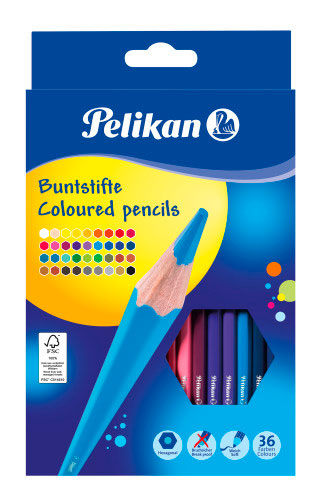 36 Pelikan coloured pencils, hexagonal design, FSC 100% wood, with breakresistant lead.