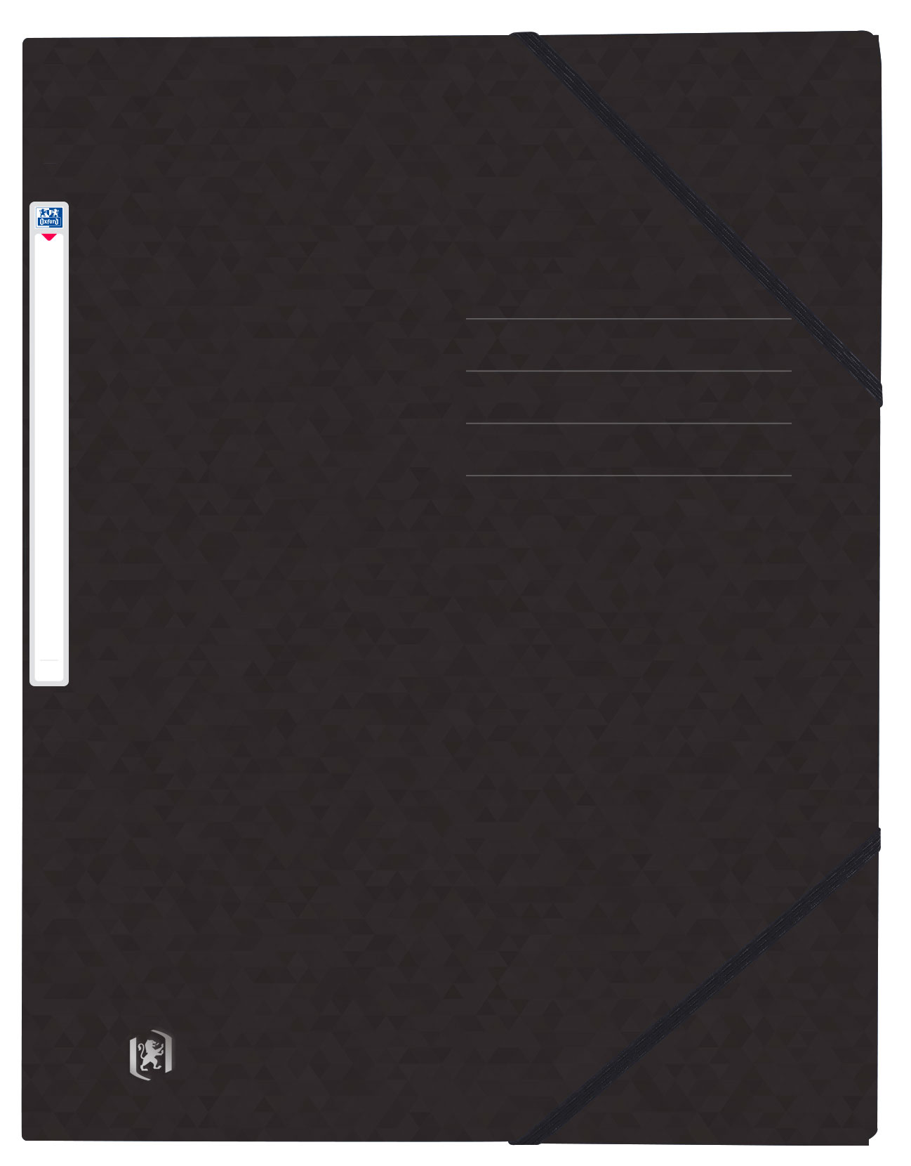 OXFORD Top File+ 3-flap elasticated folder made of 390 gsm Multi’Strat card. The Multi’Strat technology confers high resistance to tearing and daily use thanks to its exclusive multi-layered card. The OXFORD Top File+ folder offers a unique and modern design, with a printed indexing zone on the cover for easy identification and personalization. Three flaps as well as elastics guarantee a secure closing and safe-keeping of all important documents. For A4 documents. Black.