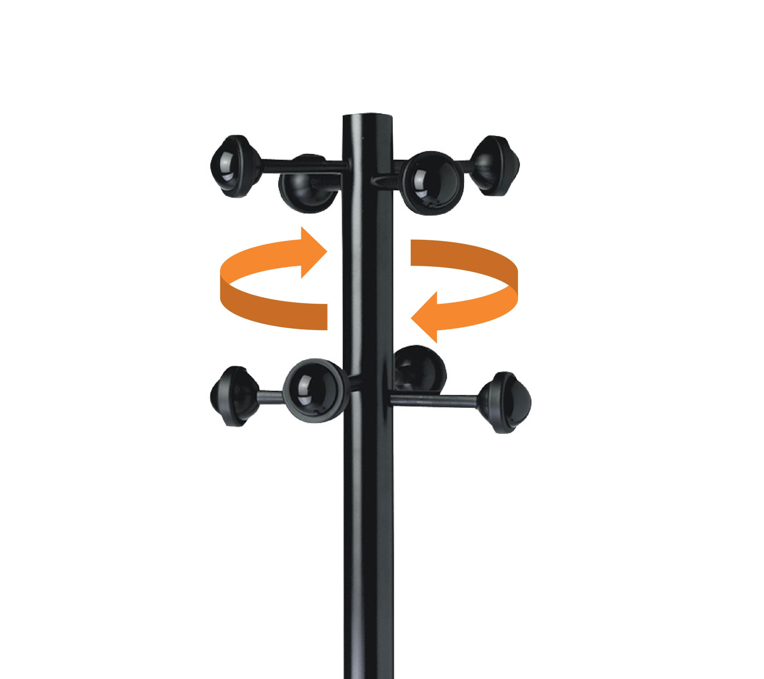 The ACCUEIL coat stand is made of a 175 cm mild steel post. It is equipped with 8 offset rounded coat pegs to facilitate the hanging. The revolving head enables to put it in the angle of an office or against a wall whilst ensuring the access to the clothing.